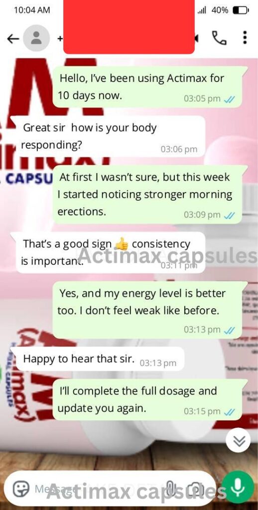 With consistent use, Actimax Herbal Capsules aim to enhance erection quality, increase libido, improve sperm count, and support long-term male fertility naturally.