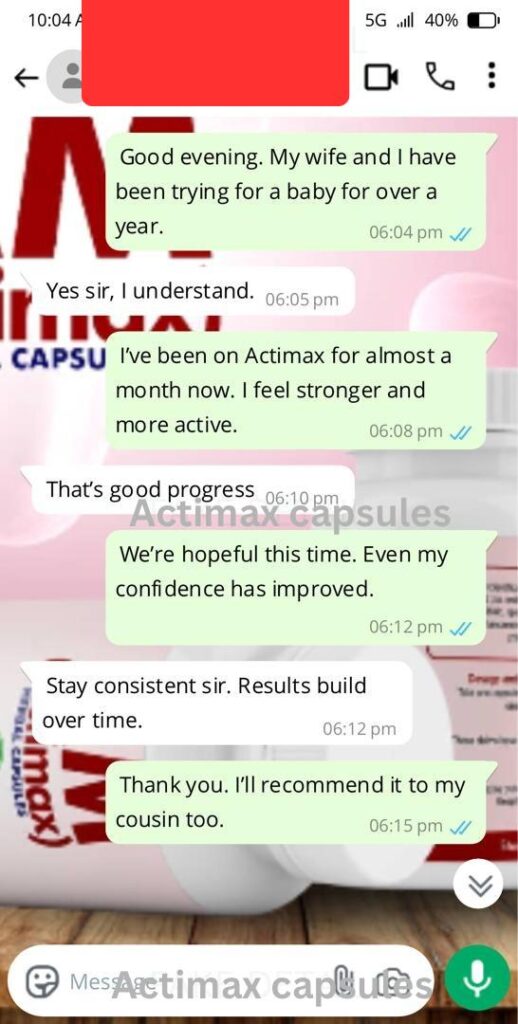 For men with low sperm count, improving sperm quantity and motility can dramatically increase the chances of conception. Actimax supports reproductive cell health, helping the body produce stronger, healthier sperm over time.